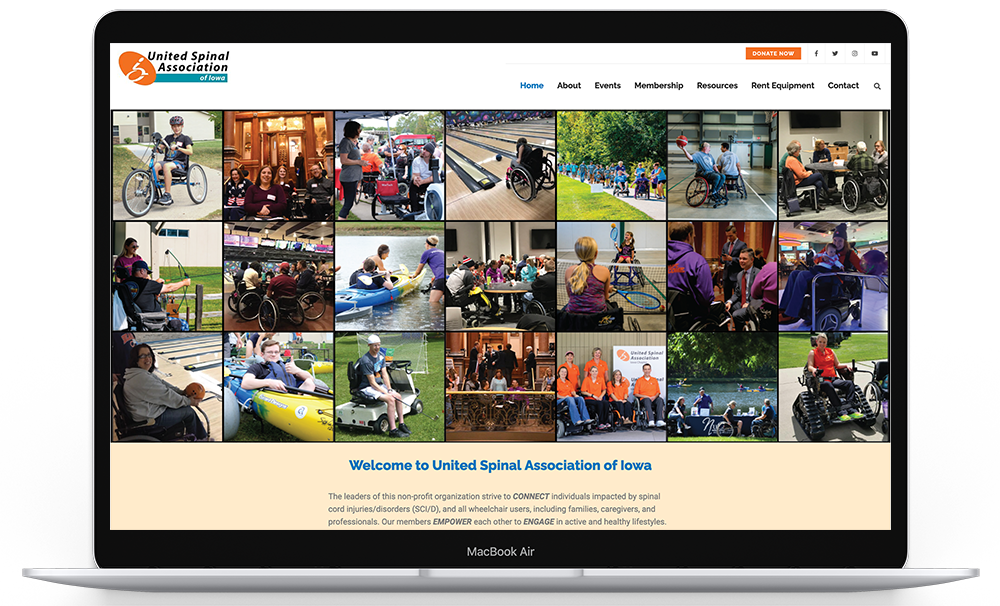 I designed/built the United Spinal Association of Iowa’s website, incorporating its established color scheme, using WordPress. A theme was purchased, but a lot of customization was done using plugins and additional CSS to get the desired look. The copy on the site was written and/or edited by me. Check the site out!